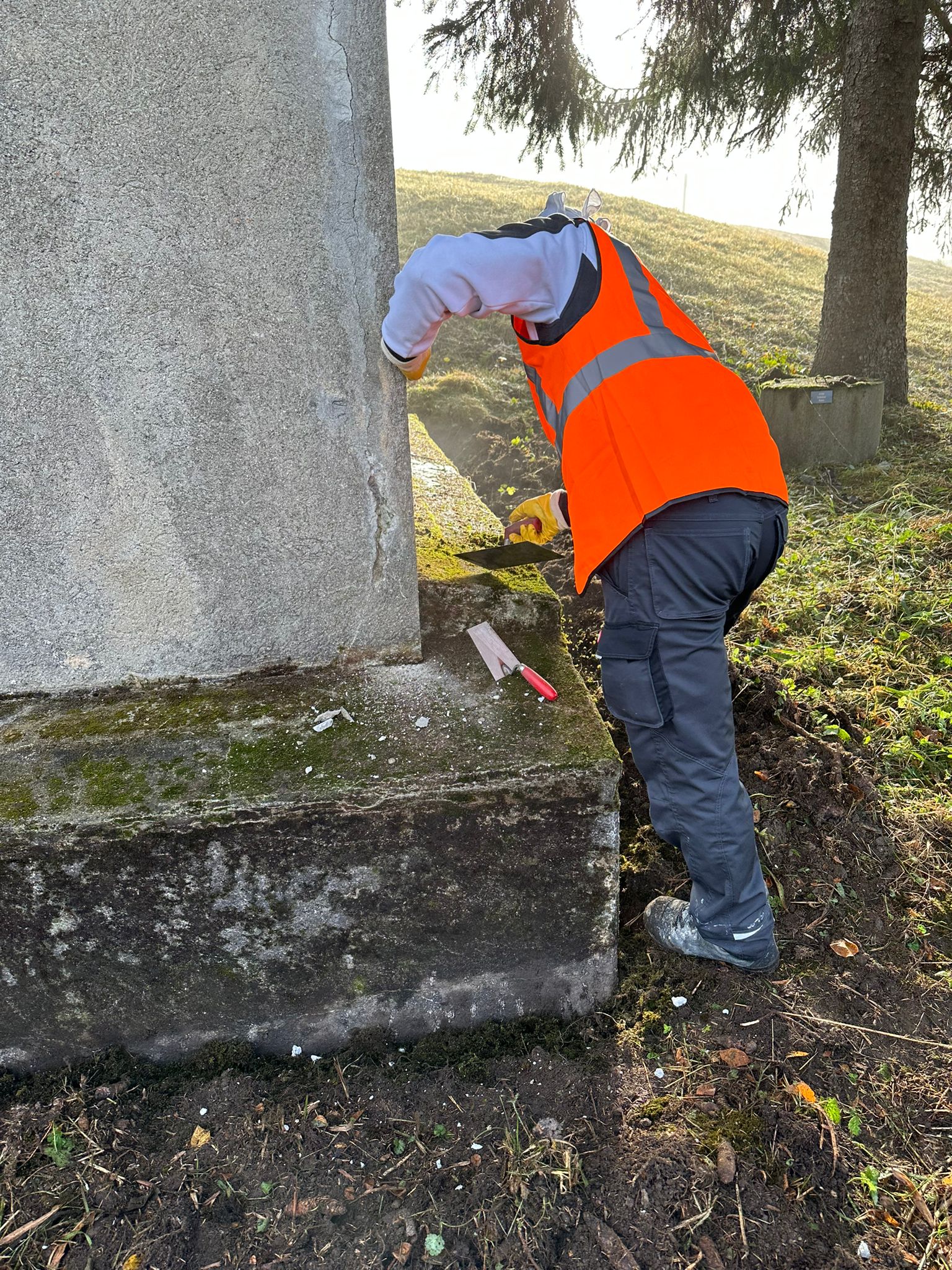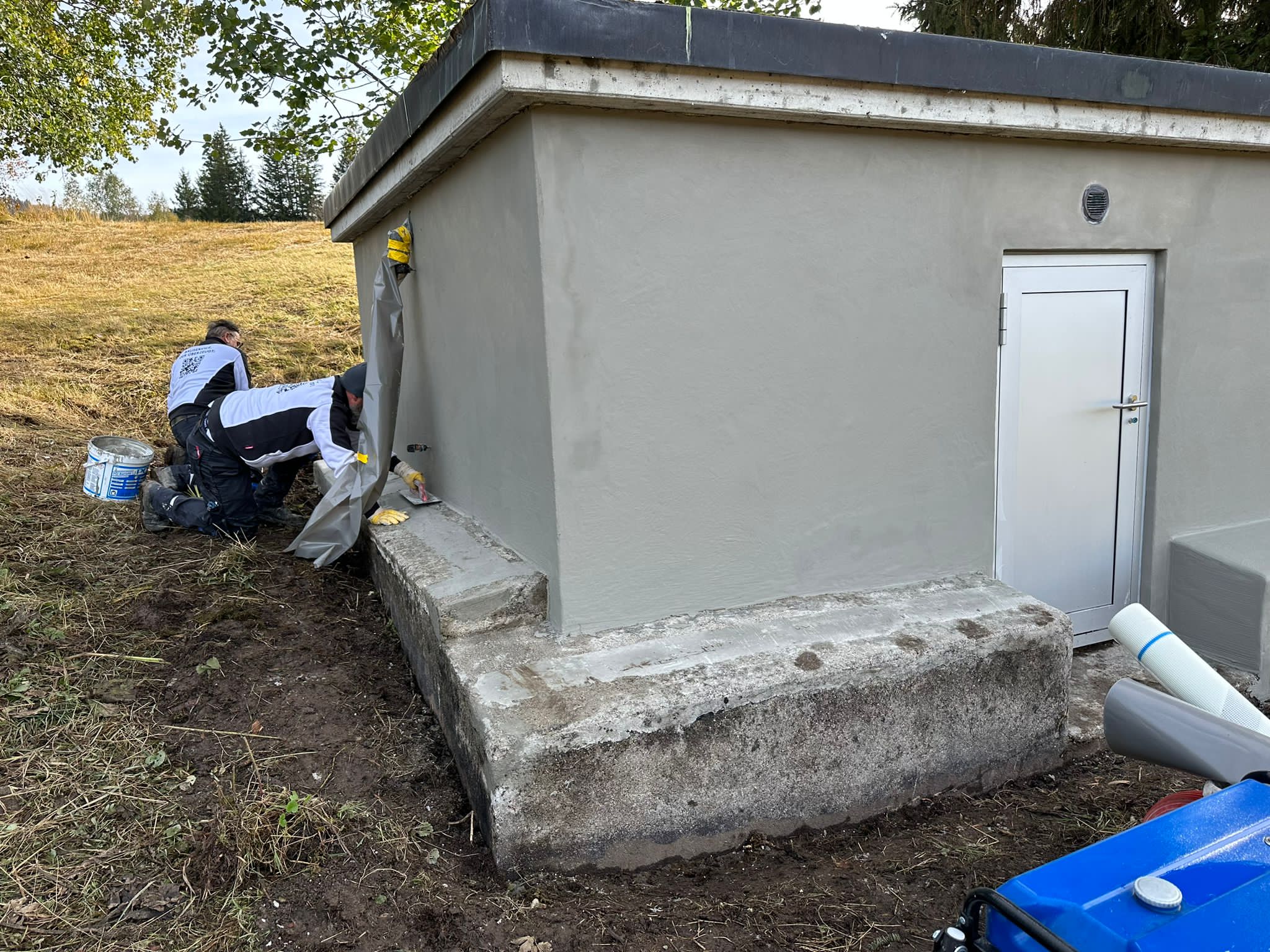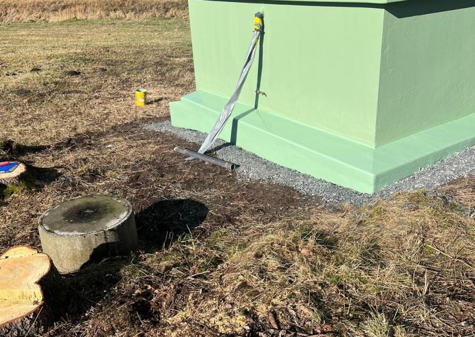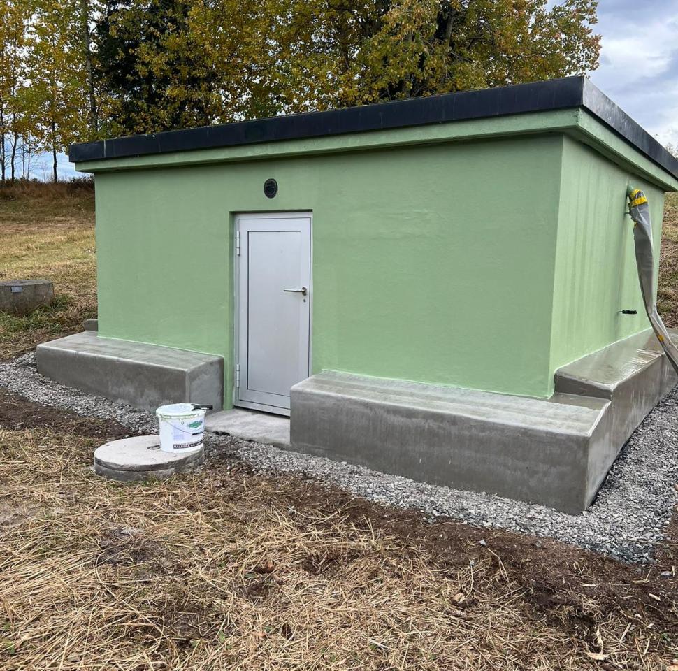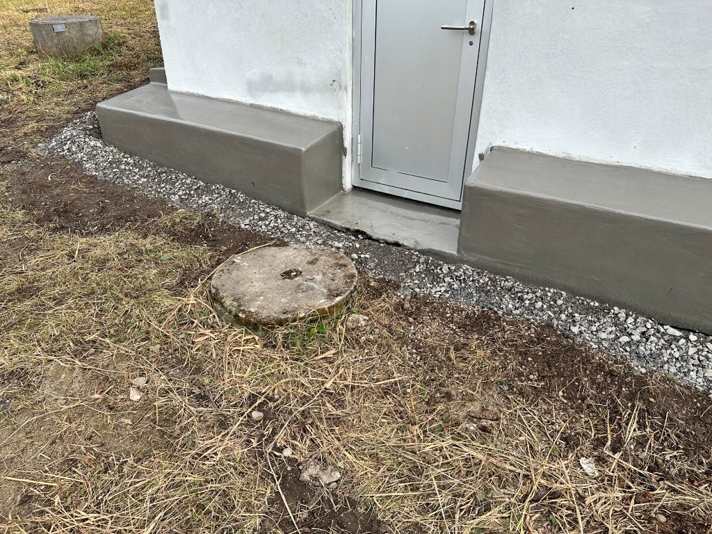 Die in einem geschützten Moorgebiet liegende Brunnenstube der Wasserversorgung HTRK in Rüschlikon wurde im Zuge von Instandsetzungsarbeiten umfassend abgedichtet und an der Fassade instand gesetzt. Ziel der Massnahme war es, die bestehende Betonkonstruktion dauerhaft abzudichten und die Fassade instand zu setzen. Zunächst wurde der bestehende, teilweise mürbe Verputz vollständig entfernt, um die Betonkonstruktion freizulegen. Anschliessend wurde der gesamte Untergrund angeschliffen und geschädigte Bereiche im Rahmen einer Betonsanierung instand gesetzt. Risse, Fugen und Anschlüsse wurden mit abgesandeten Combiflexbändern dauerhaft abgedichtet. Darauf folgte das Aufbringen eines Sperrputzes, der die Konstruktion zusätzlich vor Feuchtigkeit schützt. Den Abschluss bildete der Fassadenanstrich in grüner Farbgebung.